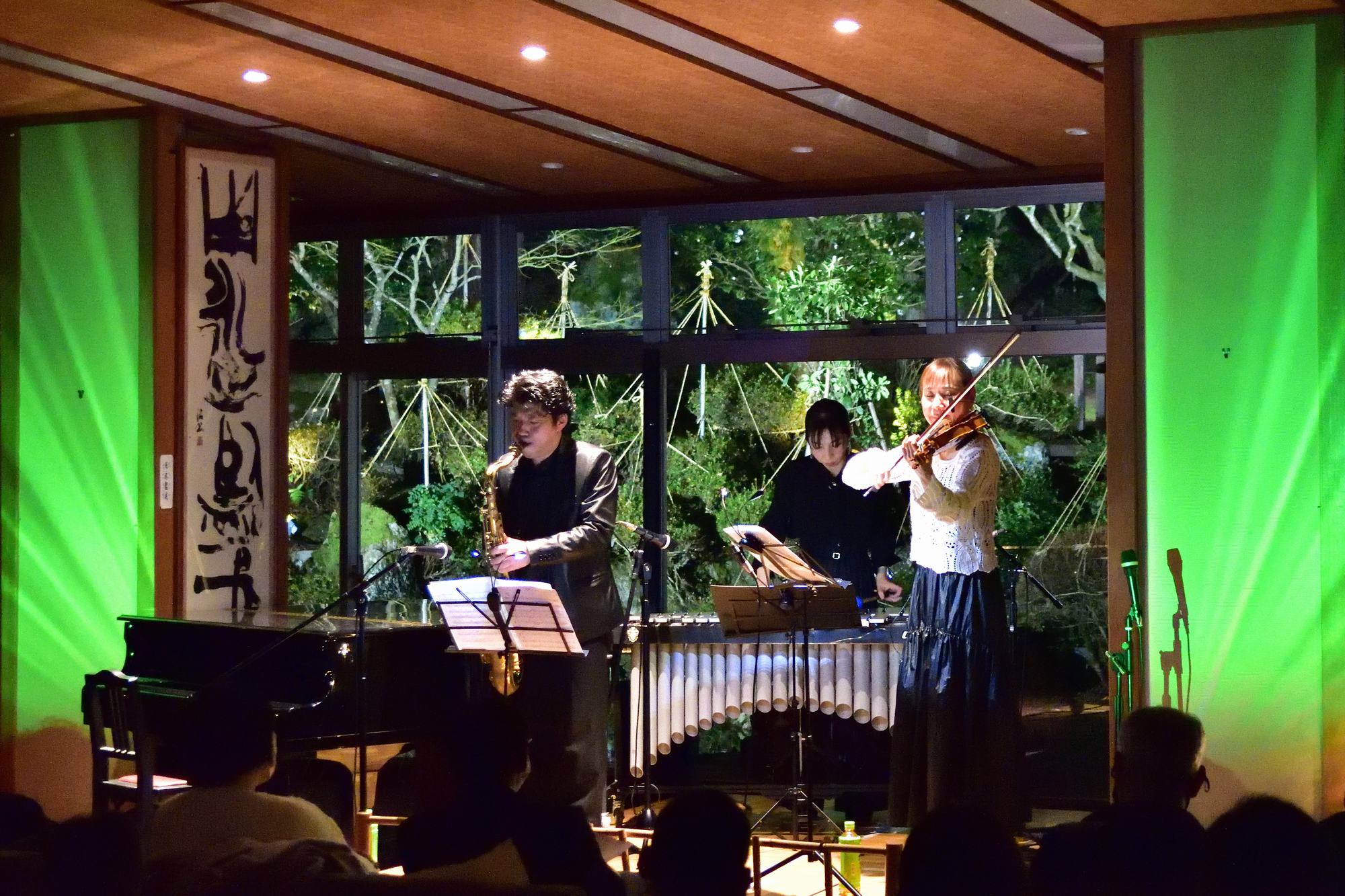 12月21日():maiko(バイオリン)、山本玲子(ヴィブラフォン)、日比野則彦(サックス/ピアノ)