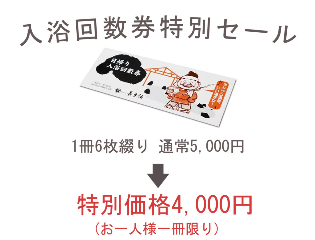 入浴回数券:6毎綴り5,000円 → 4,000円