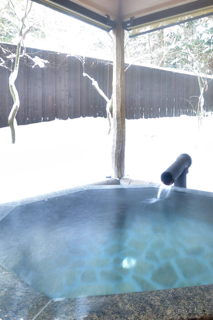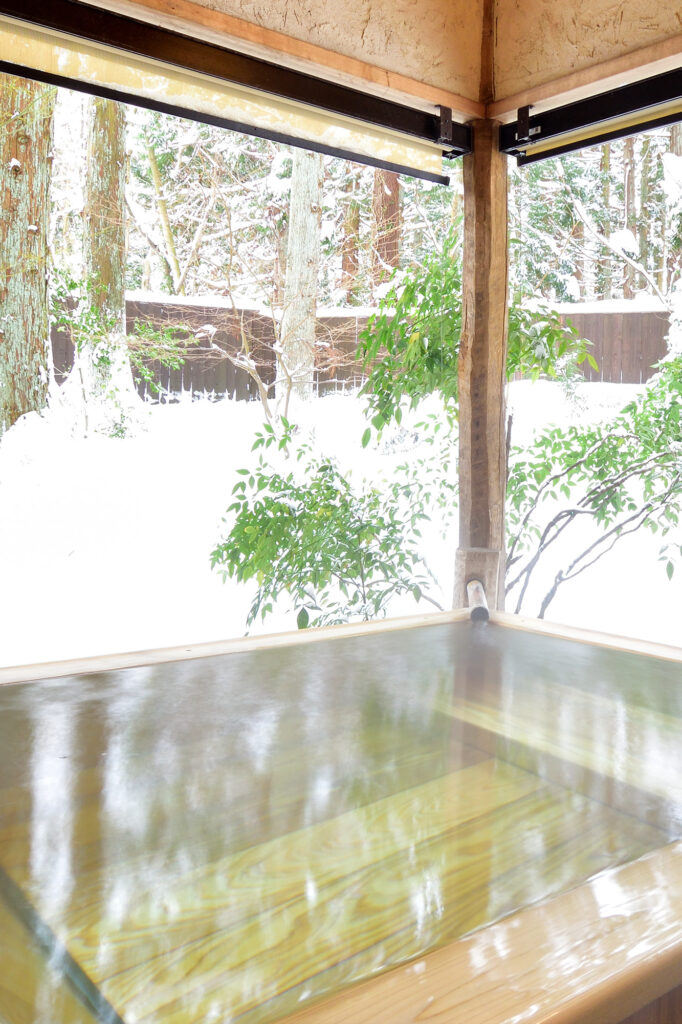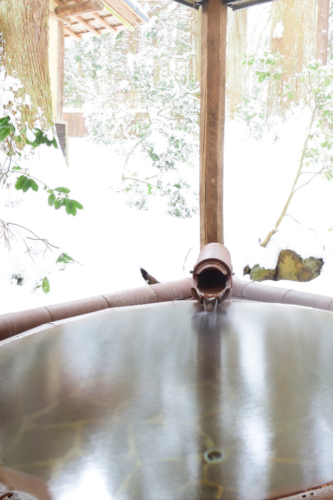 プライベート空間でゆっくり温泉と景色を楽しむことができる茶室風の貸切露天風呂。