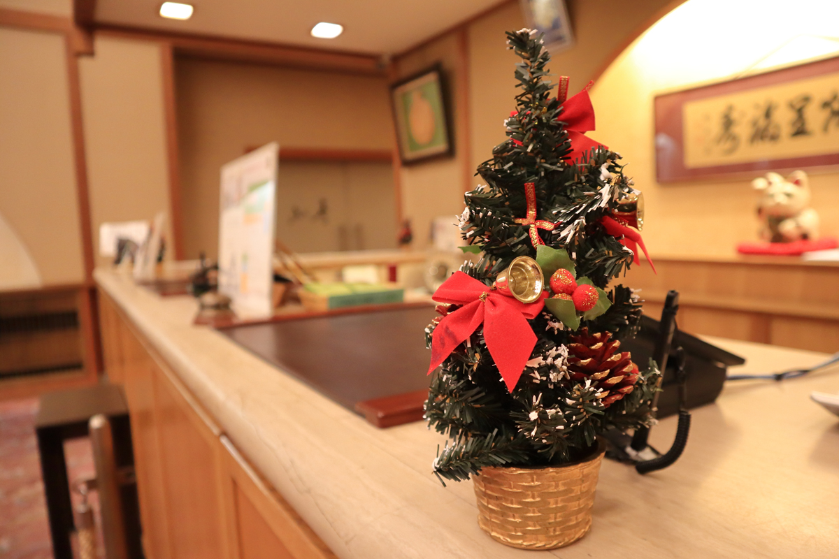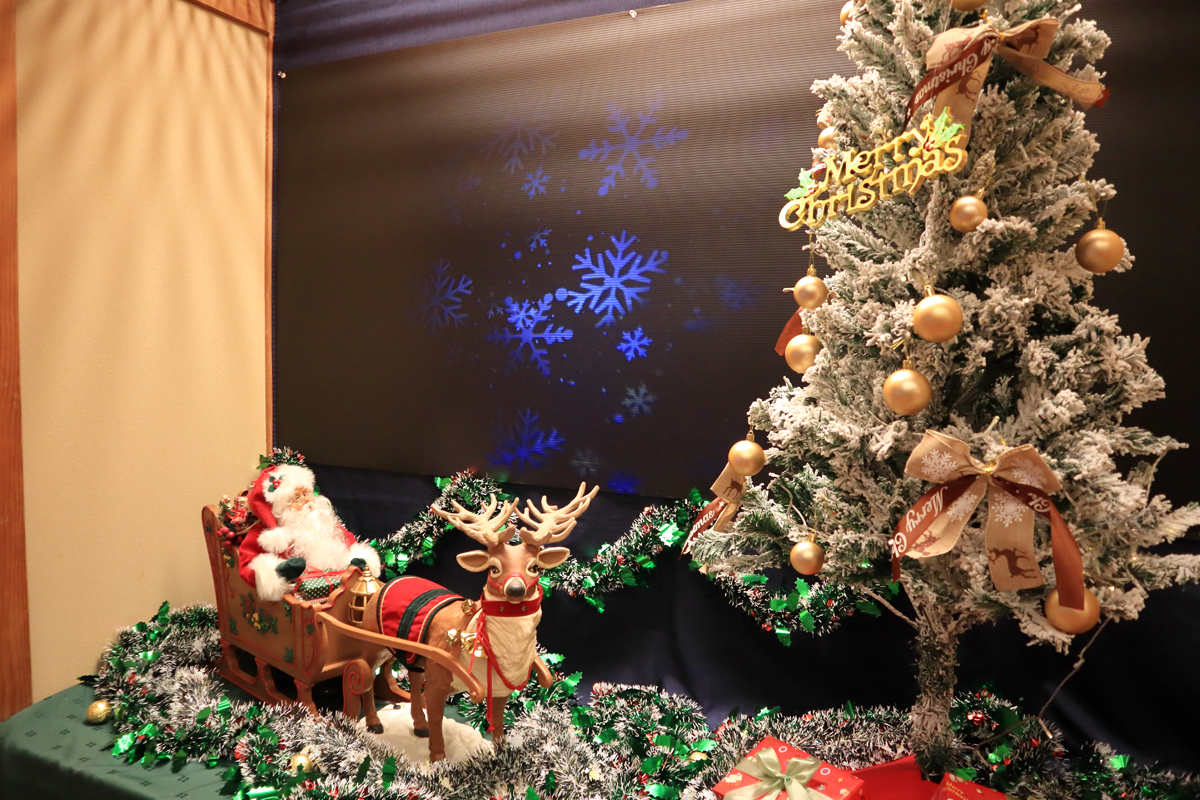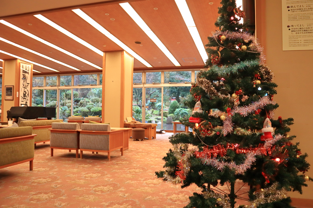 ロビーにツリーやサンタクロースで飾り付けいたしました♪