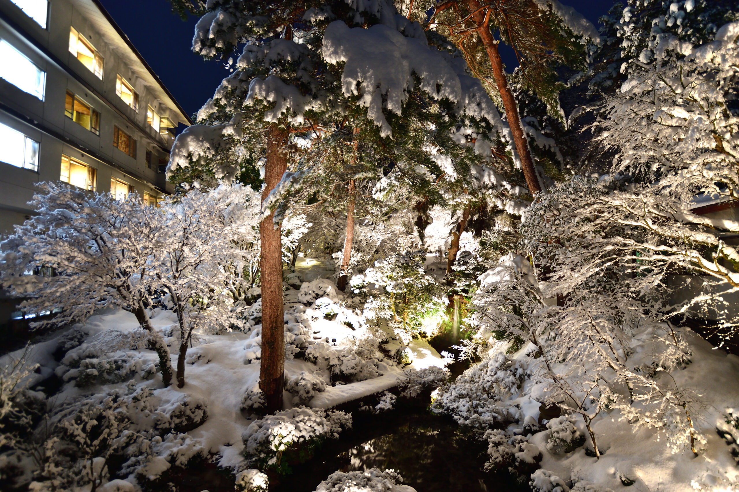 そこからは当館自慢の滝を正面に望むことができ、冬の澄んだ空気の中に佇む幻想的な景色を贅沢に独占いただけます。