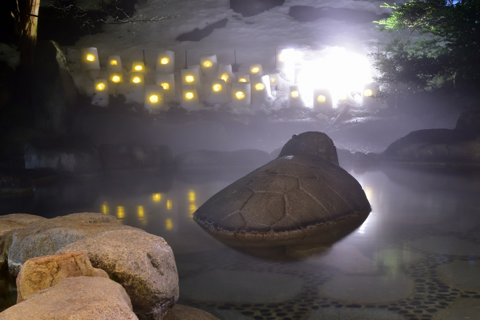 周囲は湯に反射する幻想的な灯りを楽しみながら、雪見露天風呂を是非おたのしみくださいませ。